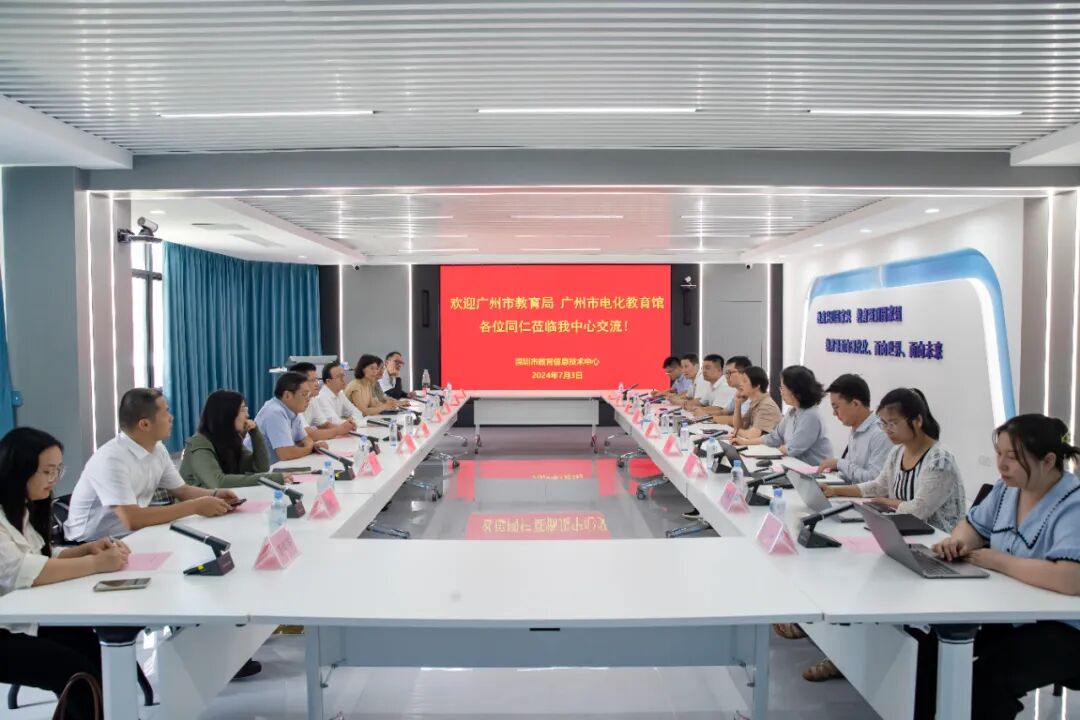 2024年7月3日,深圳市教育信息技术中心接待广州市教育局科研处与广州市电化教育馆一行来深开展交流座谈。深圳市教育信息技术中心主任张惠敏,广州市教育局科研处副处长陈颖钊,广州市电化教育馆党支部书记、馆长刘峰,副馆长罗胜涛出席,双方相关部门负责人一同座谈交流,共同探索教育数字化的广阔前景。